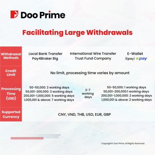 Doo Prime understands the need for efficient and reliable withdrawal services, especially when it comes to moving large amounts of funds.