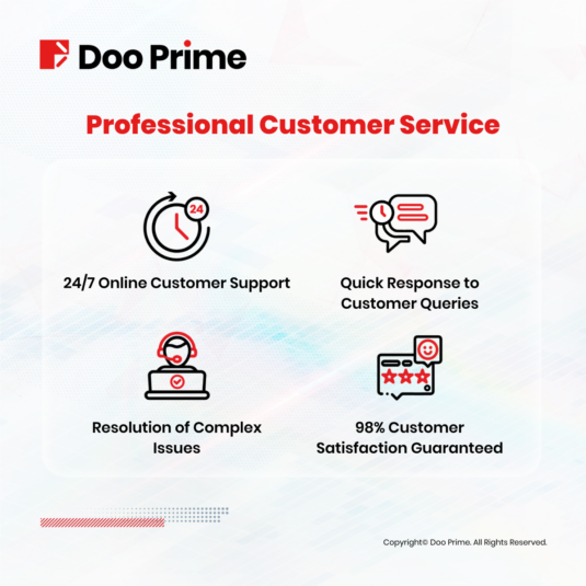Doo Prime’s customer support is available 24/7 to provide support in multiple languages including English, Chinese, Korean, Thai, and Vietnamese. With multiple customer service channels, including online chat, phone, email, and dedicated customer service managers, we are committed to providing a seamless and satisfactory experience to our clients. This is reflected in our customer satisfaction rate of 98% by the end of 2022, a testament to the quality of our customer service.