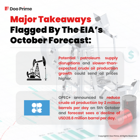 1. On 5th October 2022, OPEC+ announced to reduce crude oil production by 2 million barrels per day. With this, the OPEC crude oil production forecast sees a decline of USD28.6 million barrel per day from an average of USD29.6 million barrel per day in September 2022 over the fourth quarter of 2022 and the first quarter of 2023.