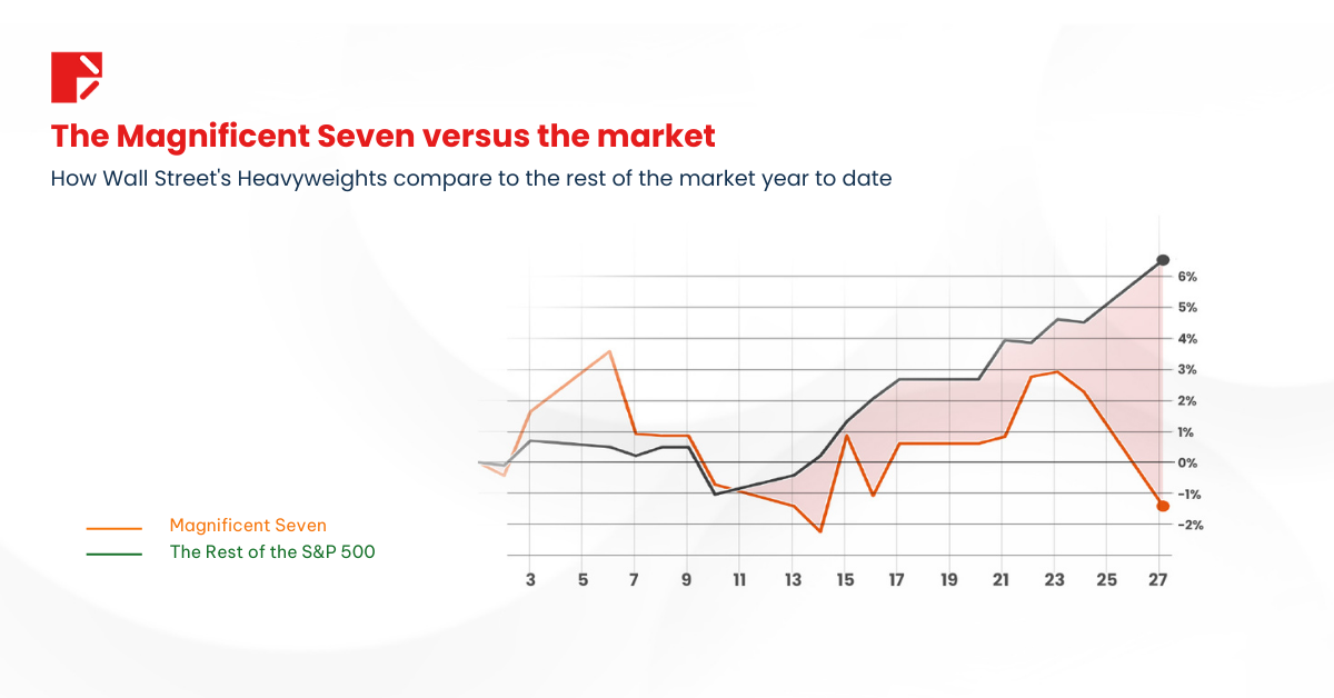 To illustrate this shift, the chart below shows the performance of the “Magnificent 7” compared to the rest of the S&P 500, highlighting the immense pressure on the technology sector.