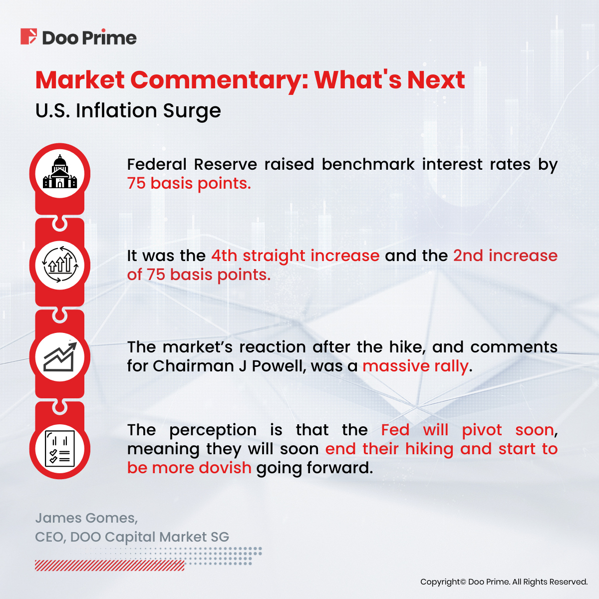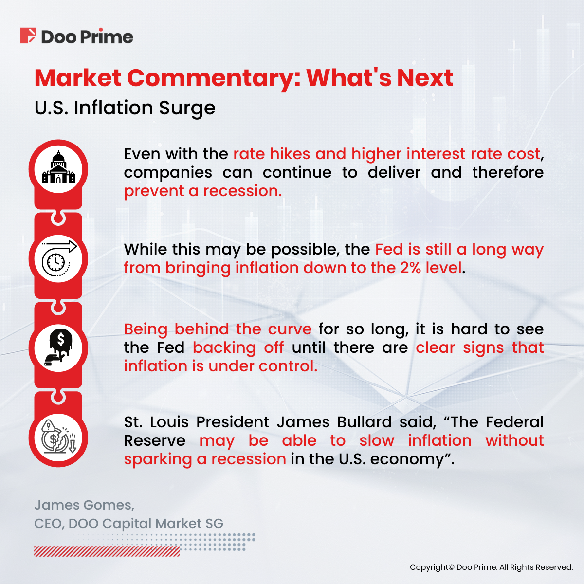 Now that we have all the facts laid out, let’s take a look at what Doo Prime’s in-house analyst, James Gomes, who has been in the finance industry for over 30 years, has to say about this ongoing U.S. inflation surge.