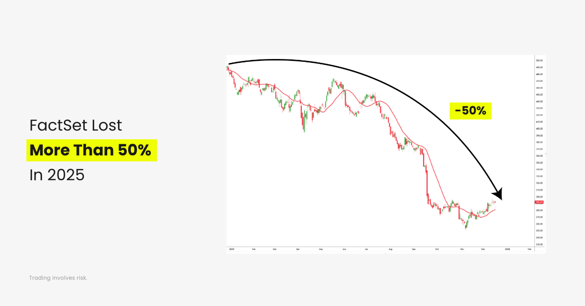 FactSet struggled as investors reassessed the long-term outlook for traditional financial data and analytics providers. The rise of AI-driven tools and changing client demand raised questions about growth sustainability, pushing the stock lower over the course of the year.