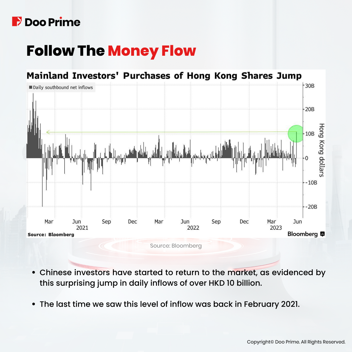 • Chinese investors have started to return to the market, as evidenced by this surprising jump in daily inflows of over HKD 10 billion.