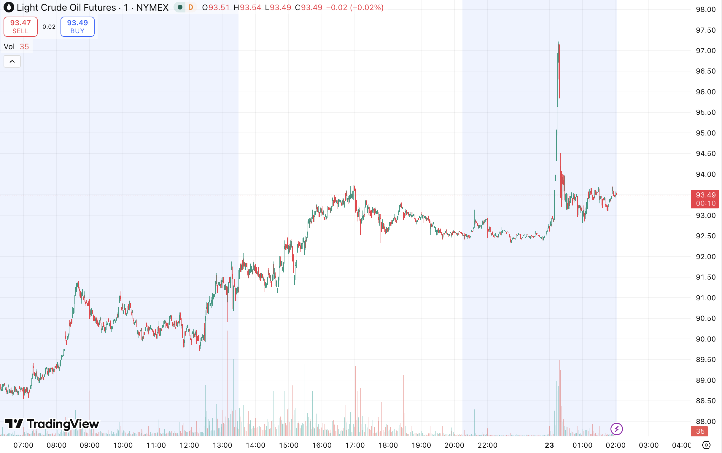 周四亚市早盘,现货黄金交投于 4730 美元/盎司附近,日内或测试 4700 美元/盎司关口,美伊和平谈判能否重启还存在不确定性,美联储主席提名人沃什表示未向特朗普承诺降息,限制金价涨幅;美原油交投于 92.50 美元/桶附近,中东局势提振油价周三上涨超 3% ,特朗普表示何时结束同伊朗冲突目前“没有时间表”。