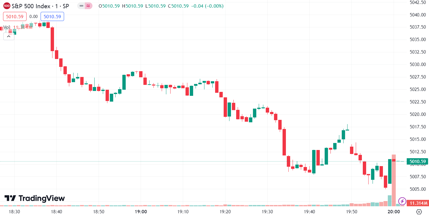 - 标普 500 指数涨 43.37 点, 涨幅为 0.87%,报 5,010.60 点
