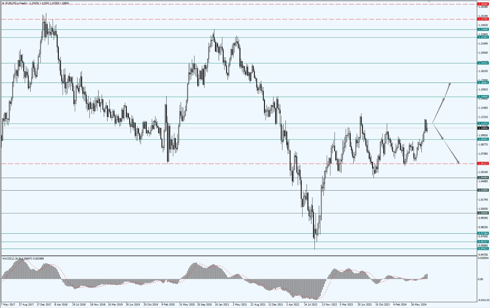 - 如果欧元力度上破 1.1143 一线,则将打开欧元进一步的上行空间,届时依次关注 1.1484 和 1.1666 两个位置的压制力度。