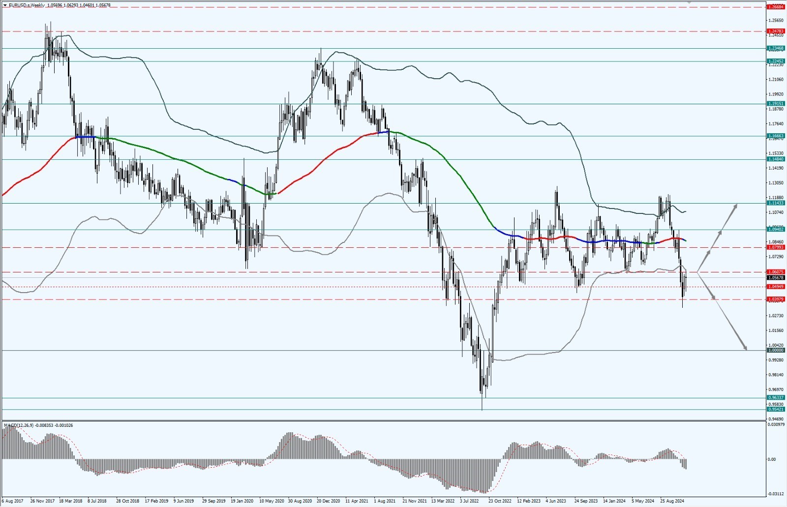 - 如果欧元兑美元运行于 1.0607 一线下方,则依次关注 1.0397 和 1.0000 两个位置的支撑力度;