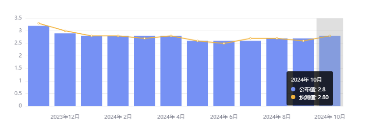• 剔除波动性较大的食品和能源的核心 PCE 物价指数同比上涨 2.8%,为今年 4 月以来的最高水平,符合预期,9 月前值为 2.7%;
