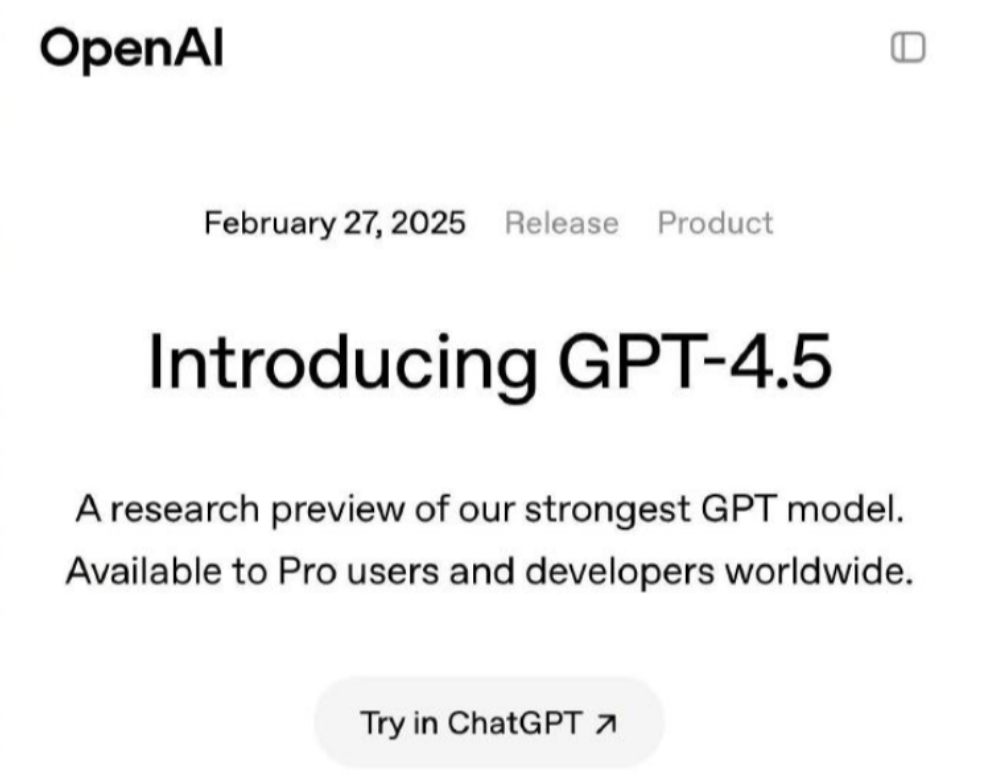 OpenAI 最新的 GPT-4.5 模型正式推出,该模型经过多个数据中心的训练,目前已开放给 Pro 用户,计划于下周扩展到 Plus 和 Team 用户。OpenAI 首席执行官 Sam Altman 表示,GPT-4.5 是市场上规模最大、对话性最强的模型,与 GPT-4 相比,在科学、数学、编程、多语言和多模式测试中表现更快且更优异