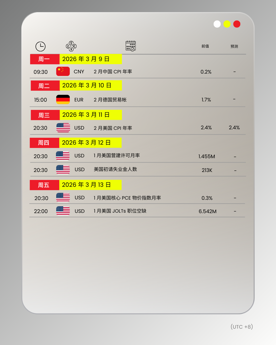 D Prime 财经日历 | 3 月 9 日 – 3 月 13 日当周