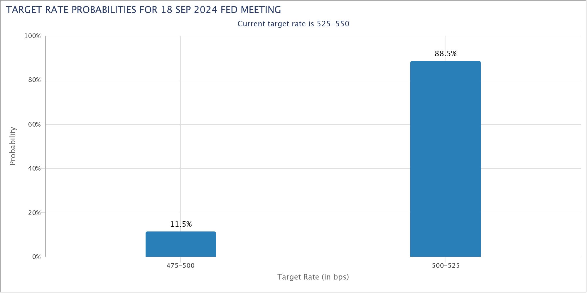 8 月 1 日,美联储宣布将联邦基金利率目标区间维持在 5.25% 至 5.5% 的水平不变,符合市场预期,为美联储 2023 年 9 月以来连续第八次维持利率不变。