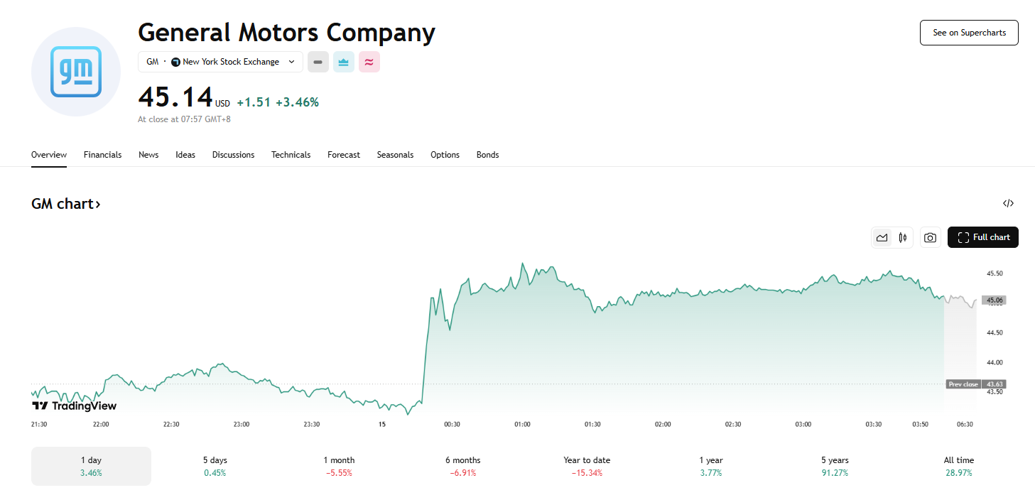 受此消息影响,周一美股盘中,通用汽车涨 3.9%,福特汽车涨 3.64%,但特斯拉仍然跌 1.46%。 。