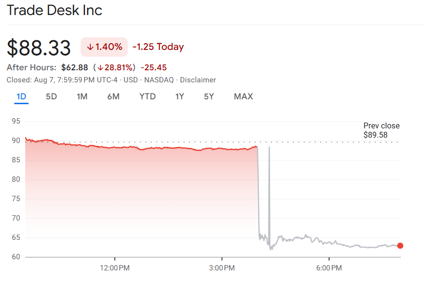 The Trade Desk Q2 财报优于预期,惟股价盘后大跌逾 25%