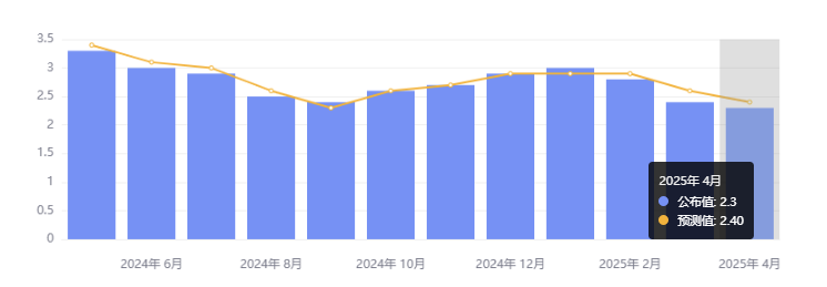 5 月 13 日,美国劳工统计局公布,4 月 CPI 同比增长 2.3%,增幅连续第三个月低于预期,为自 2021 年 2 月以来的最低水平;环比增长 0.2%,低于预期 0.3%,前值为 -0.4%。核心 CPI 同比增长 2.8%,为自 2021 年春季通胀爆发以来的最低速度;环比上涨 0.2%,低于预期 0.3%。