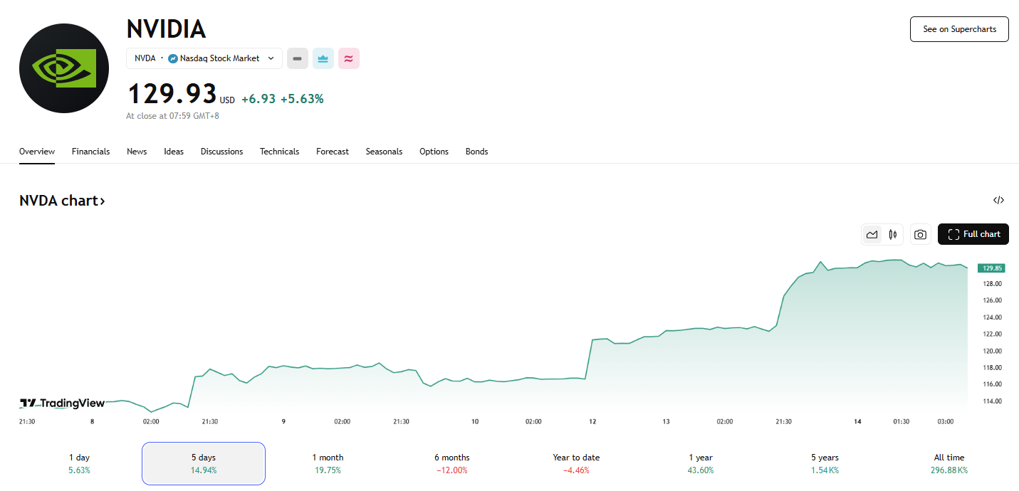 英伟达获沙特 AI 芯片大单,股价拉升逾 5%