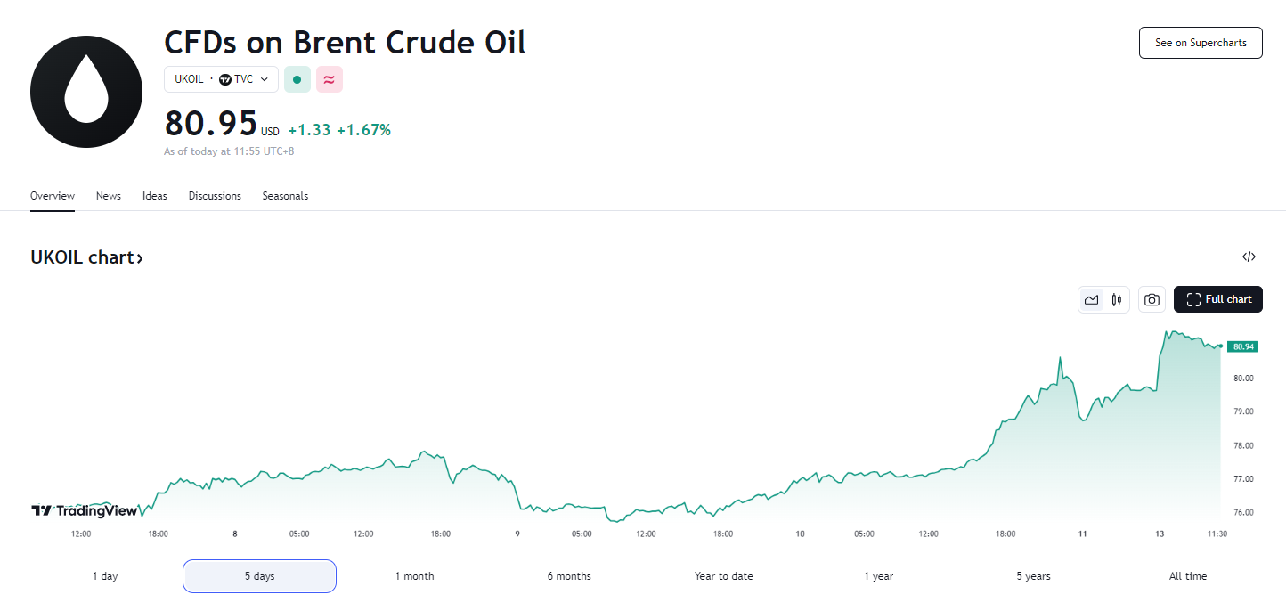 美国宣布新一轮制裁,提振布油上破 80 大关