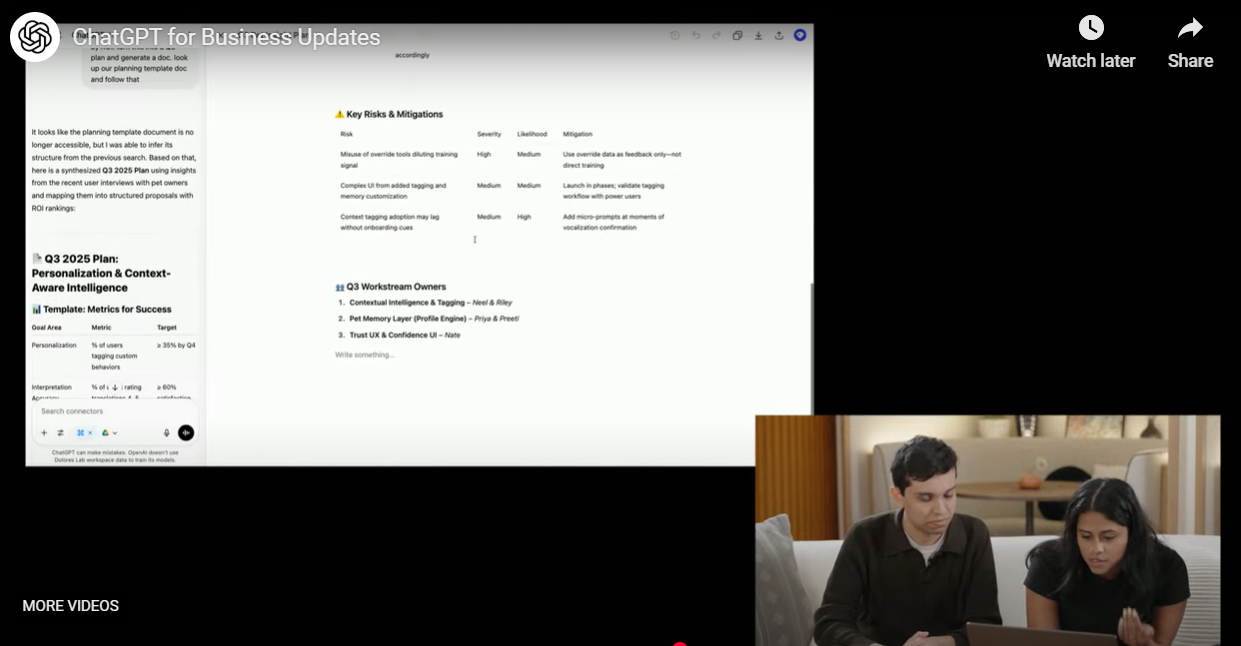 最新更新包括向 macOS 用户推出 ChatGPT 会议记录模式,可以转录任何会议、头脑风暴或语音笔记,并快速提取要点然后转化为新的内容。
