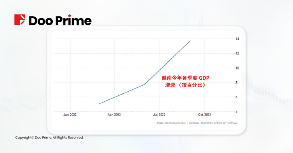 2022 年的欧美经济陷入衰退危机,中国 GDP 增速亦现放缓端倪,但越南经济增长却一路高歌猛进。越南今年第三季度 GDP 增速高达 13.7%,预计今年全年 GDP 增速可达 8%,成为东南亚今年增长最快的经济体,一时间吸引了众多市场关注。
