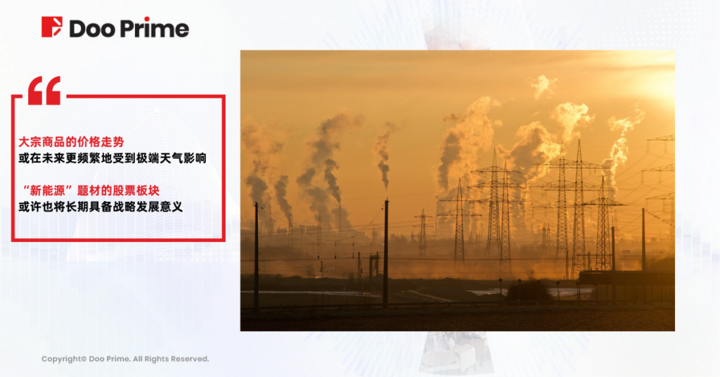 极端天气无疑为各国未来的能源安全、粮食安全以及环境安全敲响了警钟。反映到金融市场上,大宗商品的价格走势或许会在未来更加频繁地受到极端天气影响,而“新能源”题材的股票板块或许也将长期具备战略发展意义。