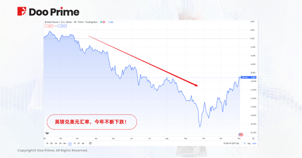 在今年俄乌战争而引发的能源危机影响下,能源价格的高企引发英国国内通货膨胀走高。为了抑制通胀,英国央行不得已连续加息。但特拉斯上任后却不顾通胀局面,反而不断推出财政刺激举措,以求提振英国经济增长,但却反而令英国央行此前的加息努力付之东流,进一步推高了通涨态势。不仅如此,随着英国10年期国债率迅速上升,英国国债价格暴跌,遭遇市场恐慌式抛售。连锁反应下,市场对于英国经济逐渐失去信心,抛售英国资产,英镑汇率和英国股市也就随之一路暴跌。