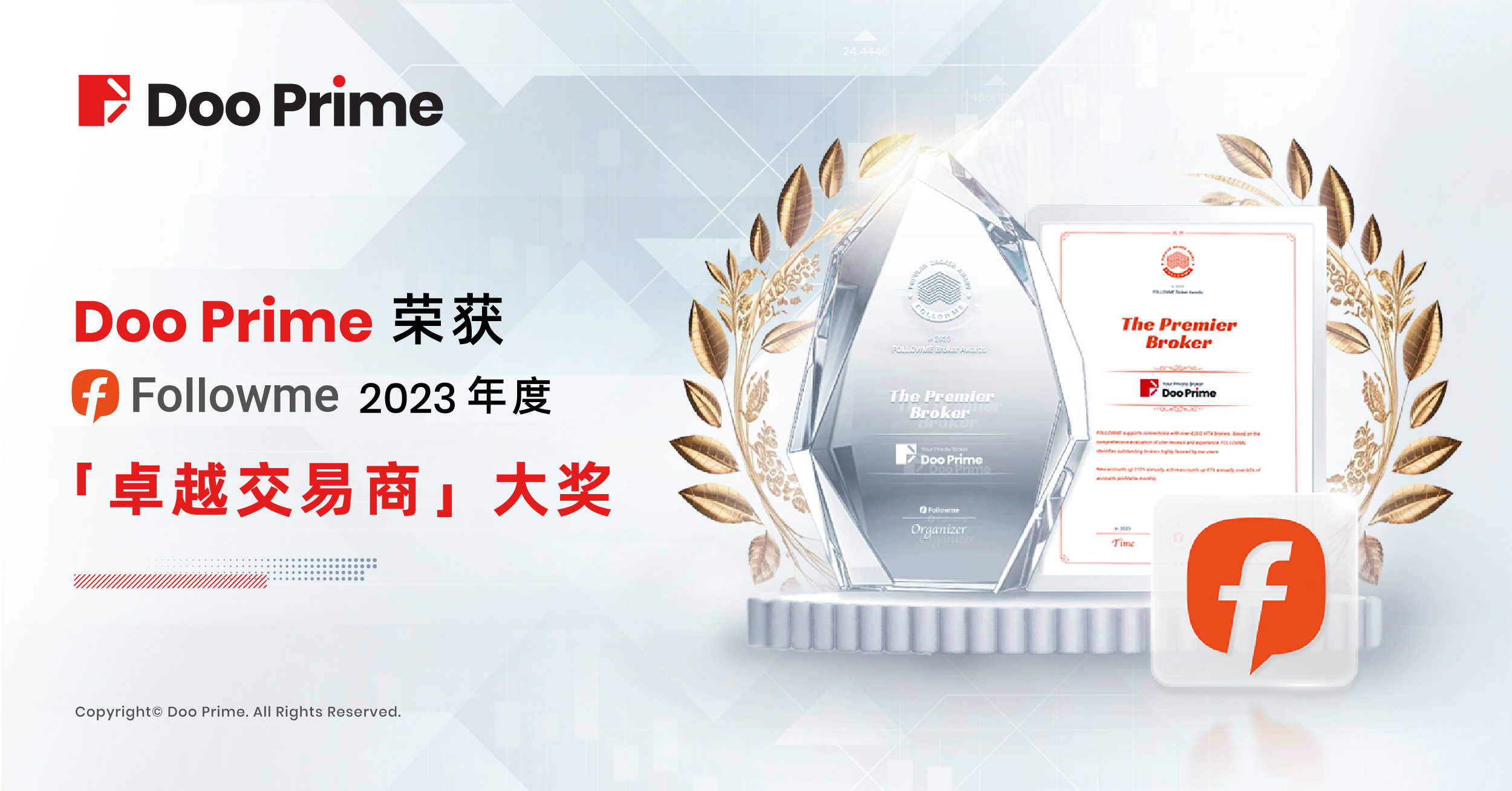 在 2023 年 FOLLOWME “最受用户喜爱交易商”颁奖典礼,Doo Prime 荣获“卓越交易商”大奖!