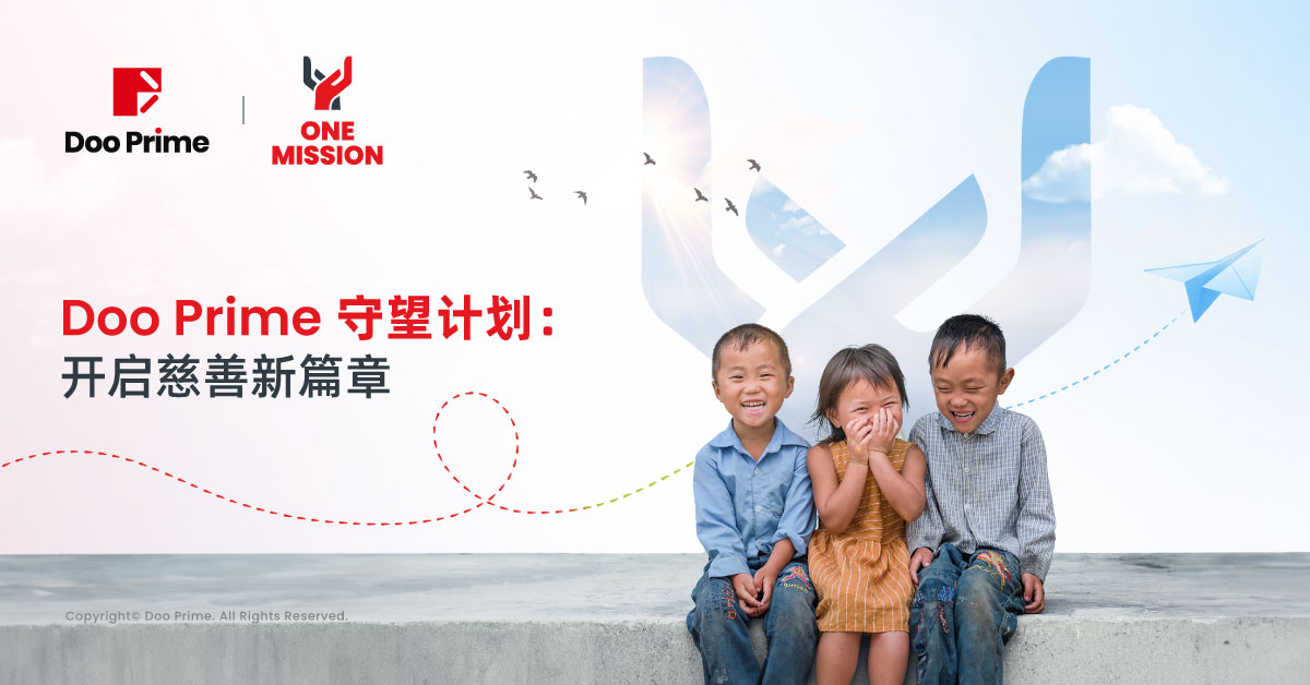 在 Doo Prime 十周年来临之际,为进一步深化企业社会责任,拓宽公益事业的边界, Doo Prime 正式启动全新的”守望计划”,标志着我们在慈善之路上的又一重要里程碑。全新的“守望计划”以“交织的双手”和“One Mission” 翻译成中文暨”守望计划” 为标识,寓意深远,象征着我们与全球客戶携手共创美好未来。
