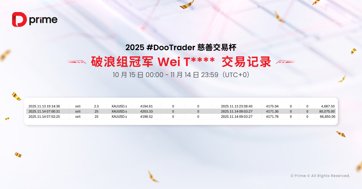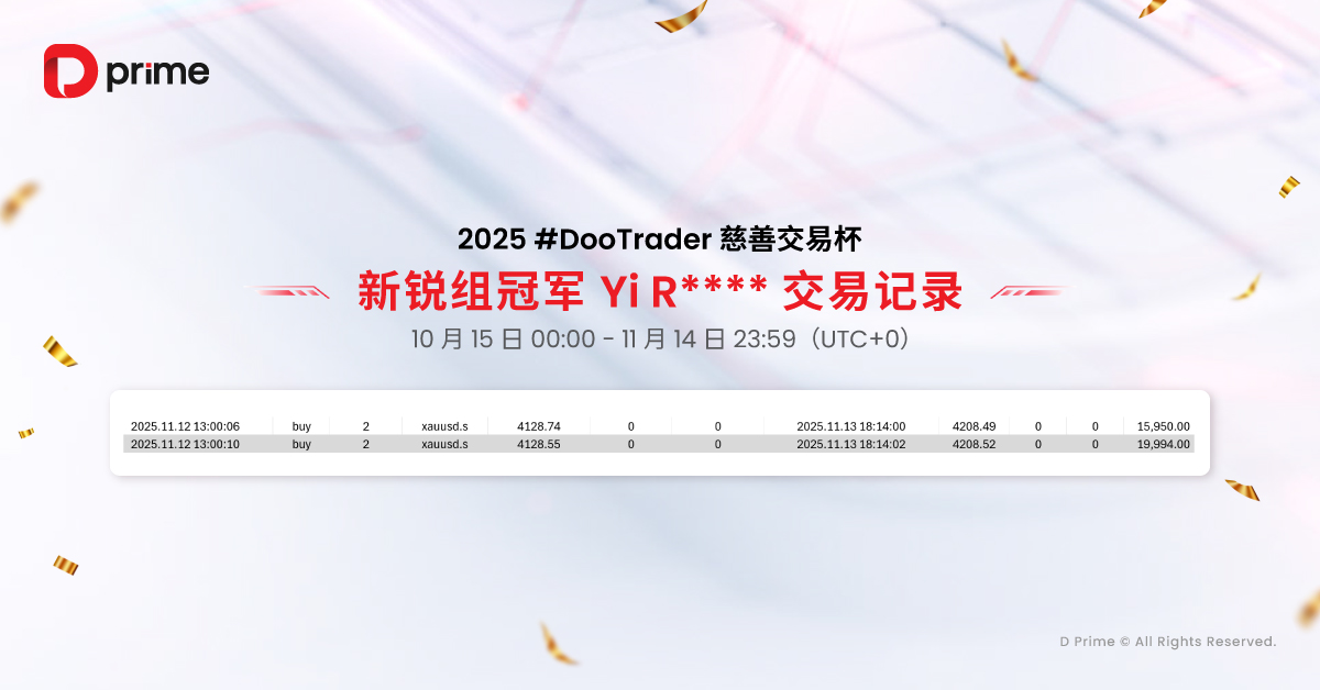 值得关注的是,2025 #DooTrader 慈善杯交易杯不仅是一场较量,更是一个传递爱心的公益活动。每当您在比赛中完成 1 手交易,D Prime 都将代表您捐出 0.1 美元,帮助改善贫困儿童的教育条件,让您的每一笔交易助力点亮更多孩子的未来。