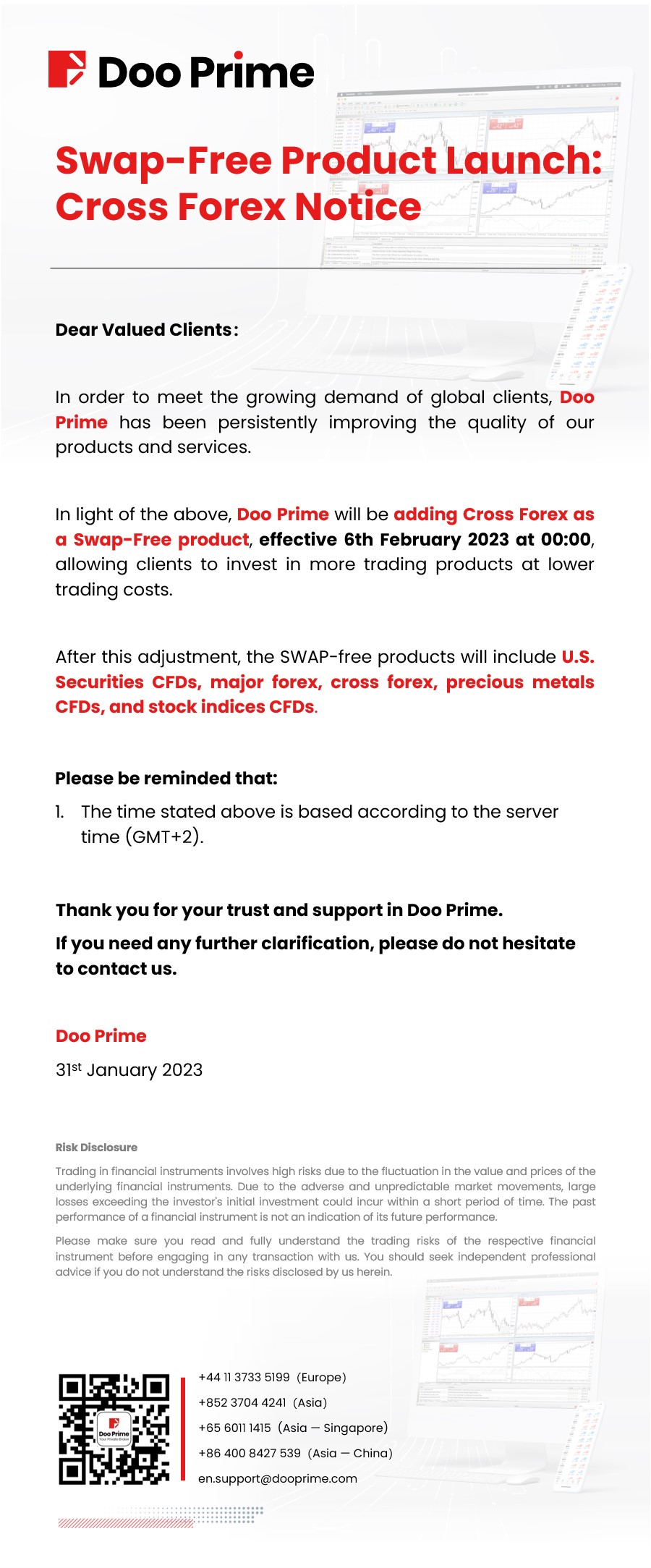 Doo Prime Swap-Free Product Launch: Cross Forex Notice