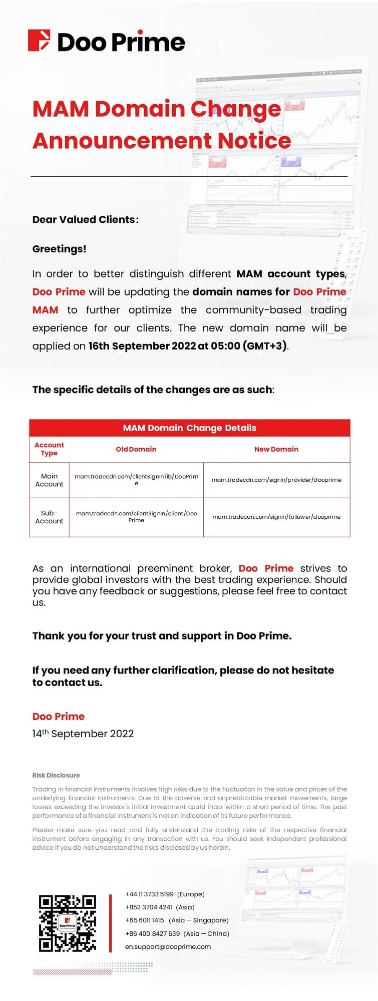 Doo Prime MAM Domain Change Announcement Notice