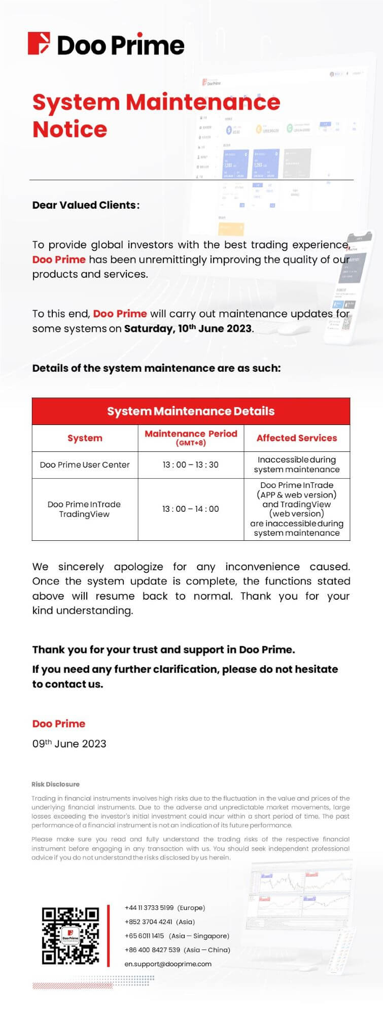 Doo Prime System Maintenance Notice