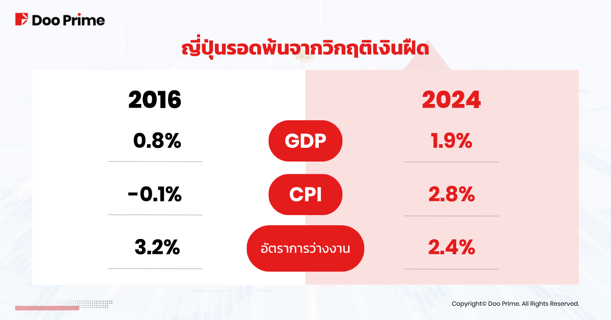 การเติบโตของ GDP ที่แท้จริงของญี่ปุ่นเพิ่มขึ้นจาก 0.8% ในปี 2016 เป็น 1.9% ในปี 2023