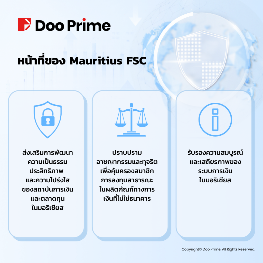 ภายใต้การกำกับดูแลของ Mauritius FSC Doo Prime ต้องปฏิบัติตามกฎและข้อบังคับอย่างเคร่งครัด เพื่อให้มั่นใจว่าทุกธุรกรรมการซื้อขายมีความโปร่งใสและปลอดภัย