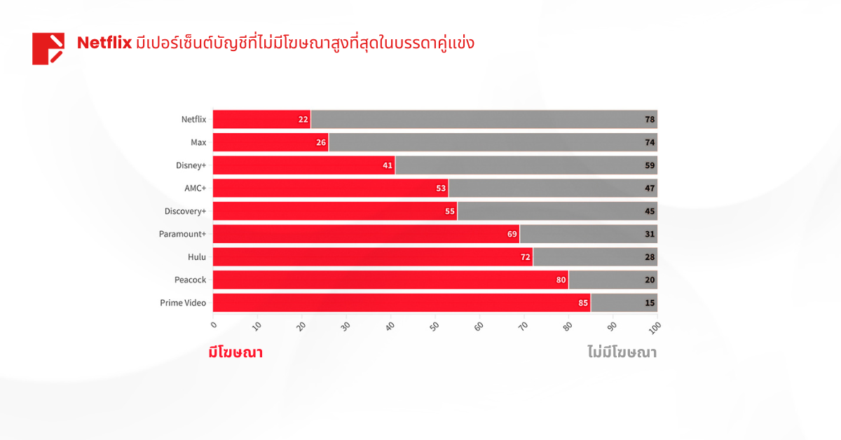 ที่น่าสนใจคือ บัญชีที่รองรับโฆษณาของ Netflix มอบอัตรากำไรจากรายได้ที่สูงกว่าคู่แข่ง ขณะที่บัญชีที่ไม่มีโฆษณายังคงมีอัตราการรักษาผู้ใช้ที่สูงที่สุดในอุตสาหกรรม