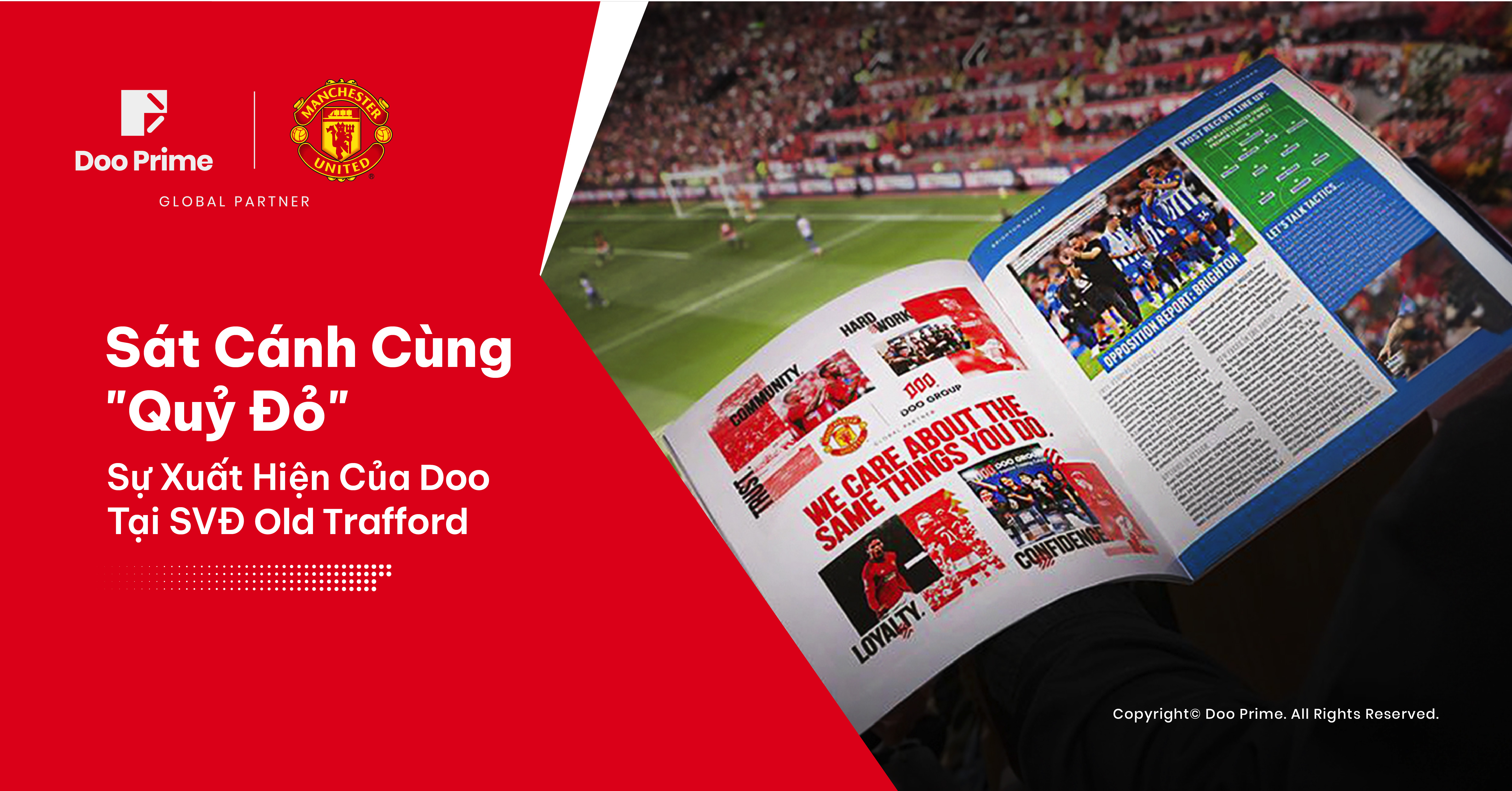 Mùa giải bóng đá mới đã chính thức bắt đầu. Đây cũng là lúc Doo Group xin vui mừng thông báo sự xuất hiện của mình tại sân vận động Old Trafford “huyền thoại”. Sự kiện này mang ý nghĩa đặc biệt quan trọng khi chính thức đánh dấu cột mốc mới trên hành trình khẳng định vị thế của Doo Group trên toàn cầu. Thông qua đó, chúng tôi sẽ mang thương hiệu của mình đến gần hơn với cộng đồng quốc tế.