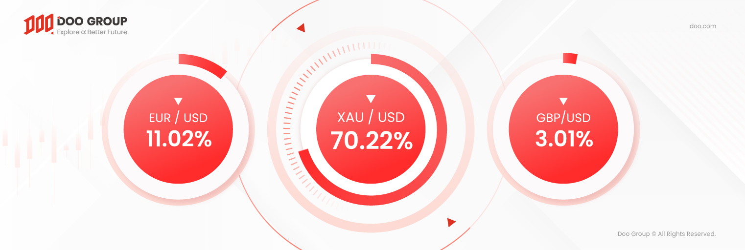 - Tỷ giá cặp XAU/USD có mức tăng trưởng cao nhất, tăng 50.70% (tăng 22.60 tỷ USD)
