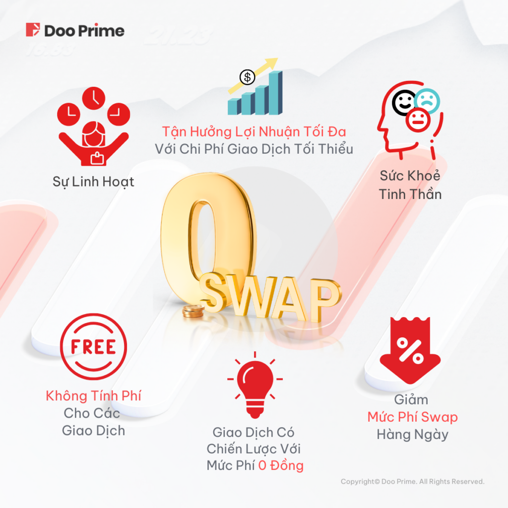 Với nhu cầu ngày càng tăng cao đối với giao dịch miễn phí lãi suất qua đêm (phí Swap), Doo Prime tự hào rằng chúng tôi là một trong số ít các công ty môi giới đầu tiên có khả năng đáp ứng nhu cầu của thị trường. Chương trình ưu đãi mang tính cách mạng này là một trong những lợi thế của chúng tôi so với các công ty môi giới khác trên thị trường tài chính. Được khởi động vào ngày 26 tháng 3 năm 2022, chiến dịch Miễn Giảm Phí Swap vẫn tiếp tục diễn ra cho đến thời điểm hiện tại nhằm đáp ứng tốt nhất nhu cầu của quý khách hàng.