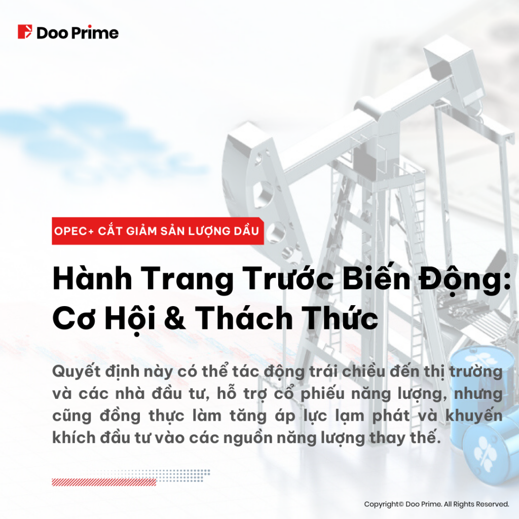Nhìn chung, quyết định cắt giảm sản lượng dầu thô của OPEC+ sẽ tác động sâu rộng đến nền kinh tế toàn cầu. Trong tình huống này, các nhà đầu tư nên theo dõi chặt chẽ từng nhịp đập của thị trường và đưa ra các quyết định sáng suốt dựa trên khả năng dự đoán rủi ro và các mục tiêu đầu tư của mình. Trên thực tế, sự biến động của thị trường dầu mỏ được dự kiến là sẽ tiếp diễn, và các nhà đầu tư nên chuẩn bị cho những biến động tiềm tàng của thị trường khi tiến hành định vị bản thân nhằm tận dụng các cơ hội sẵn có, đồng thời giảm thiểu các yếu tố liên quan đến rủi ro.