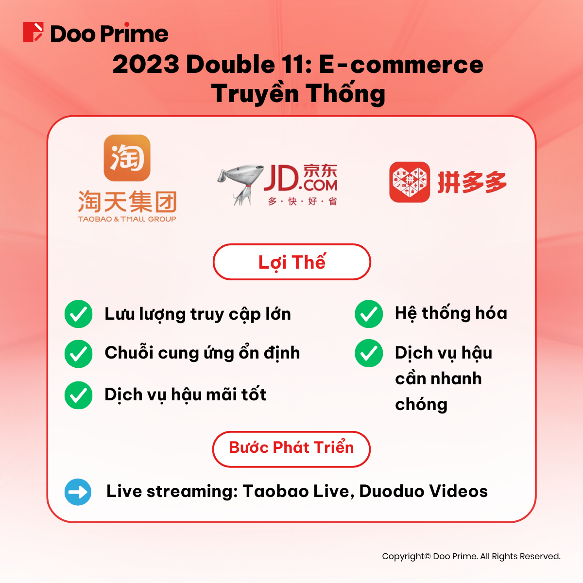 Trong bài viết này, chúng ta sẽ cùng khám phá những khía cạnh đặc biệt của Ngày hội mua sắm “Double 11”. Chúng ta sẽ phân tích các chiến thuật marketing mà các ông lớn như Taobao Group, JD Group, Pinduoduo, và Douyin sử dụng trong cả 2 hình thức thương mại điện tử: shelf-base e-commerce (gian hàng thương mại điện tử) và content-drive e-commerce (thương mại điện tử bằng nội dung sáng tạo).