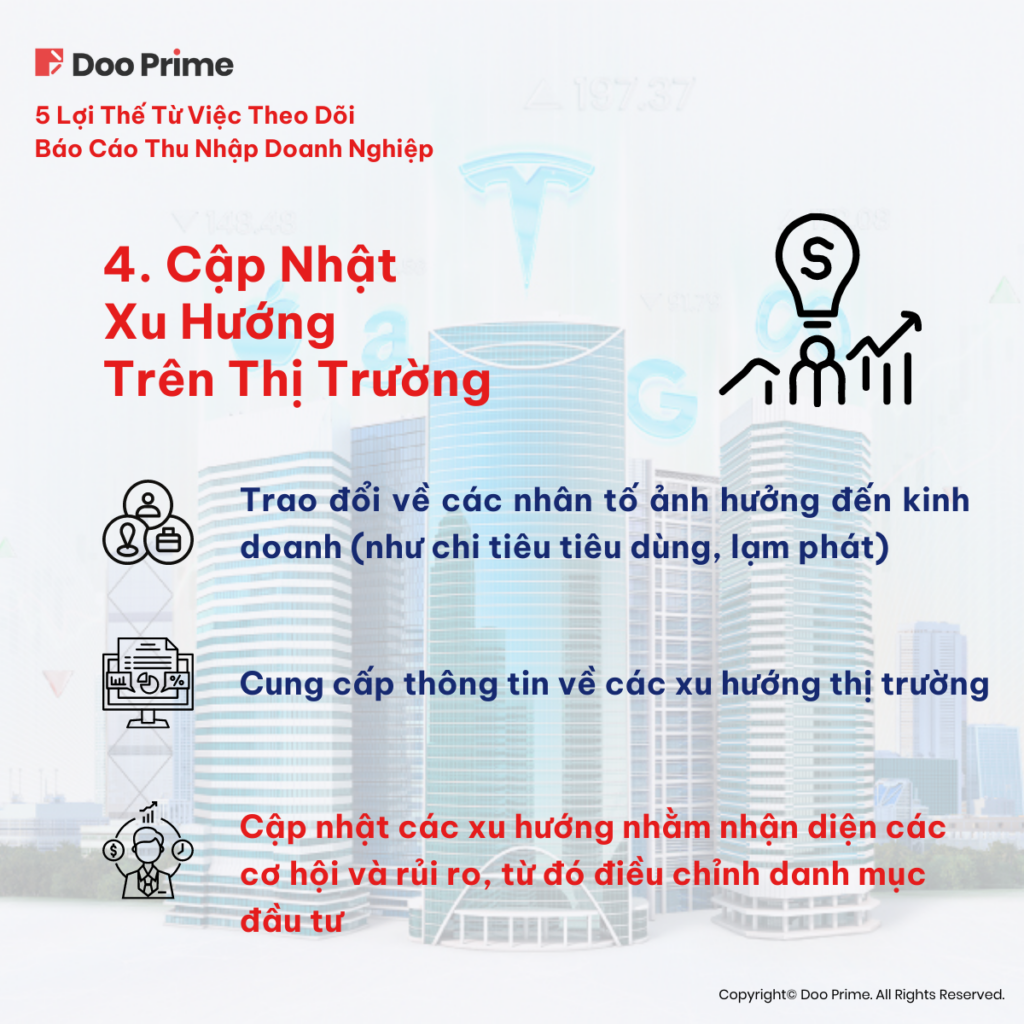 Thông qua việc bắt kịp những xu hướng trên, nhà đầu tư có thể tiến hành điều chỉnh danh mục đầu tư của mình nhằm nắm bắt các cơ hội mới nổi hoặc giảm thiểu các rủi ro tiềm ẩn.