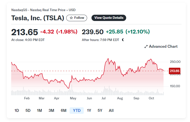 Cổ Phiếu Tesla Tăng Gần 11% Trong Phiên Giao Dịch Ngoài Giờ.