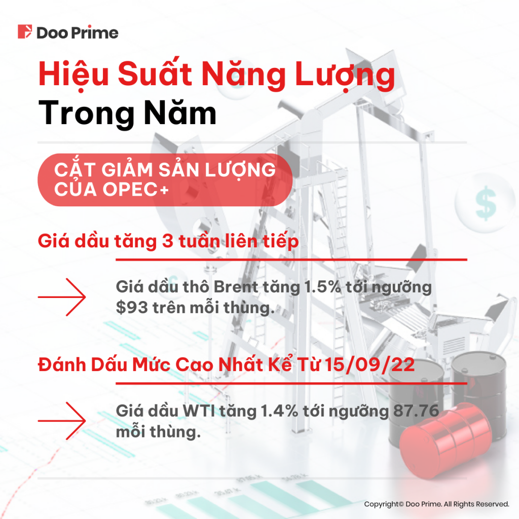 1. Sức ép của Tổ chức Các nước Xuất khẩu Dầu mỏ (OPEC+) trong việc giảm sản lượng dầu thô 0.1 triệu thùng/ngày trong tháng 10, cùng với khả năng tiếp tục cắt giảm sản lượng của mặt hàng này trong tương lai.