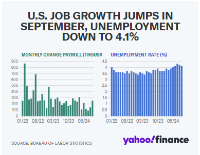 Vào Thứ Sáu, tình hình việc làm của Mỹ sẽ trở thành tâm điểm. Báo cáo việc làm tháng 10 dự kiến sẽ cho thấy 125,000 việc làm phi nông nghiệp được bổ sung vào nền kinh tế Mỹ, với tỷ lệ thất nghiệp giữ ổn định ở mức 4.1%, theo dữ liệu từ Bloomberg. Trong tháng 9, nền kinh tế Mỹ đã tạo ra 254,000 việc làm, trong khi tỷ lệ thất nghiệp giảm xuống 4.1%.