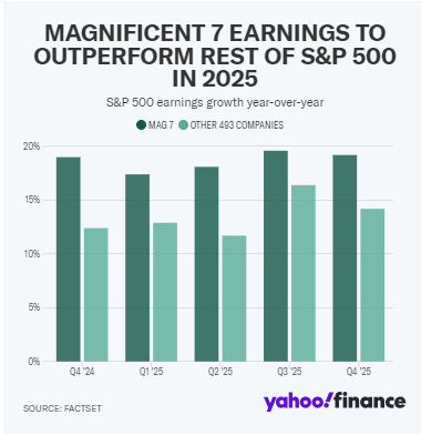 Kết quả kinh doanh của 7 ông lớn ngành công nghệ chắc chắn sẽ là một thông tin nhà đầu tư không nên bỏ qua. Factset nhận định, “Magnificent 7” dự kiến sẽ tăng trưởng lợi nhuận hàng năm ở mức 18,1% trong quý này, trong khi 493 công ty còn lại trong S&P 500 dự kiến chỉ thấy mức tăng trưởng 0,1%.